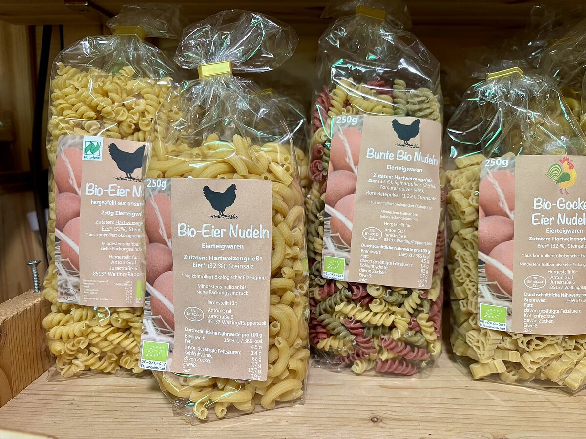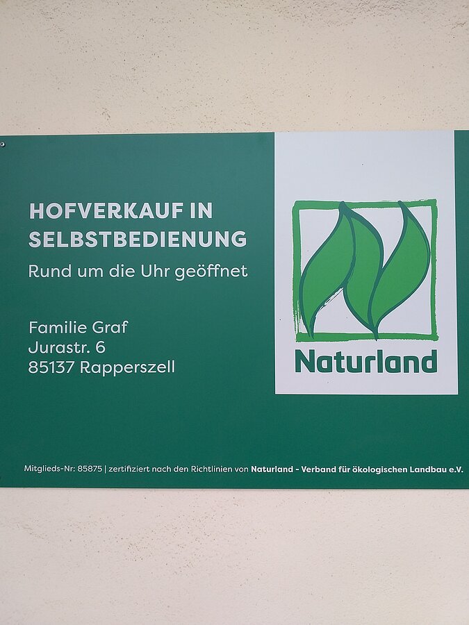 Unser Hof wird seit 20 Jahren nach Naturland-Richtlinien bewirtschaftet. Wir mögen es bunt, pflanzen Kartoffeln verschiedener Sorten an, ebenso Gemüse (z. B. alte Tomatensorten), das wir saisonal in unserem Laden anbieten. Obst ernsten wir von unseren Streuobstwiesen.